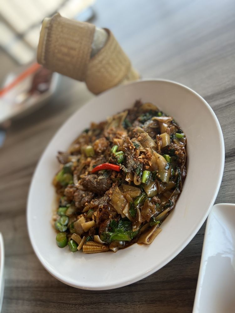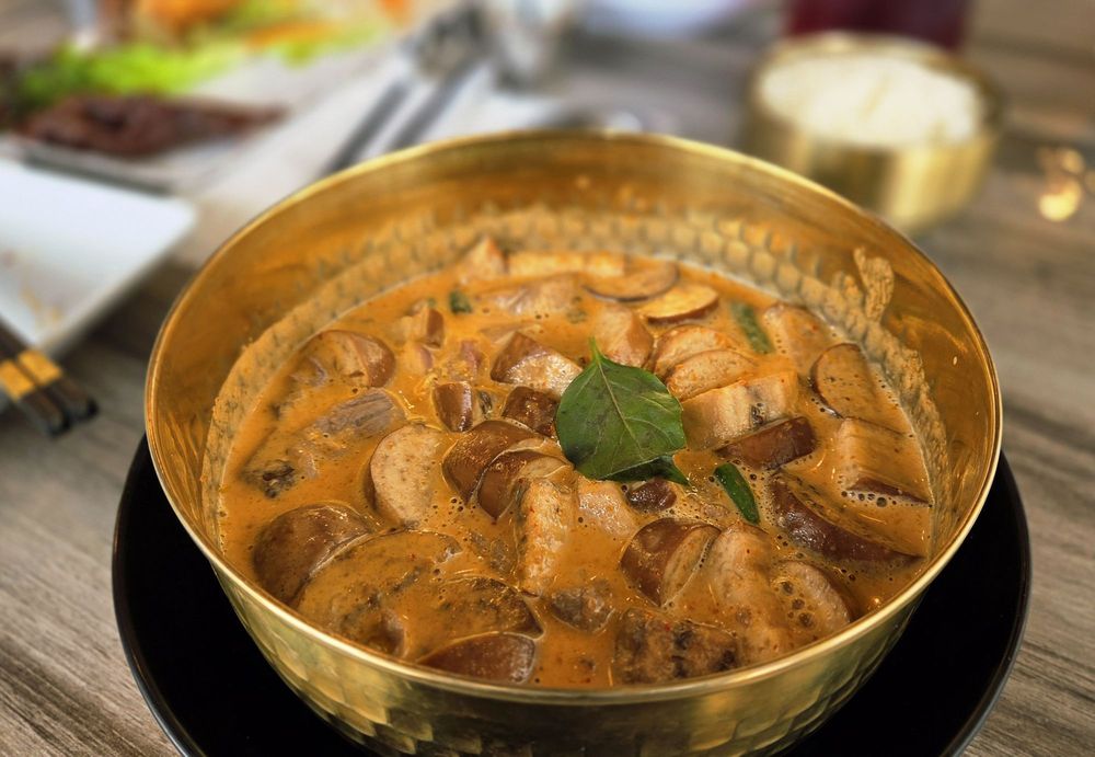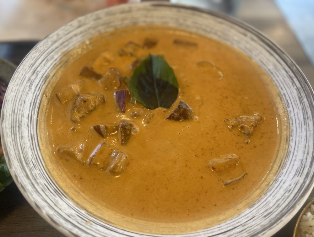 The menu highlights a mix of Thai favorites and Lao specialties — from rich red curry and drunken noodles to standout dishes like laab, papaya salad, and crispy rice (nam khao). Many dishes are praised for their balance of spice, freshness, and depth, with recipes rooted in family tradition and authentic techniques.