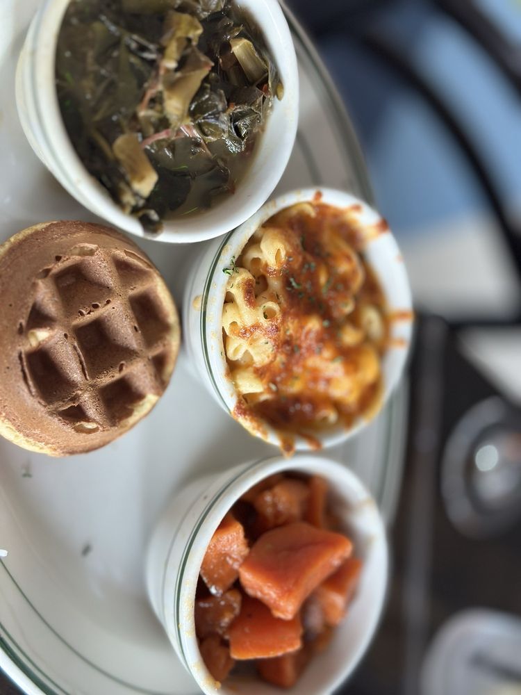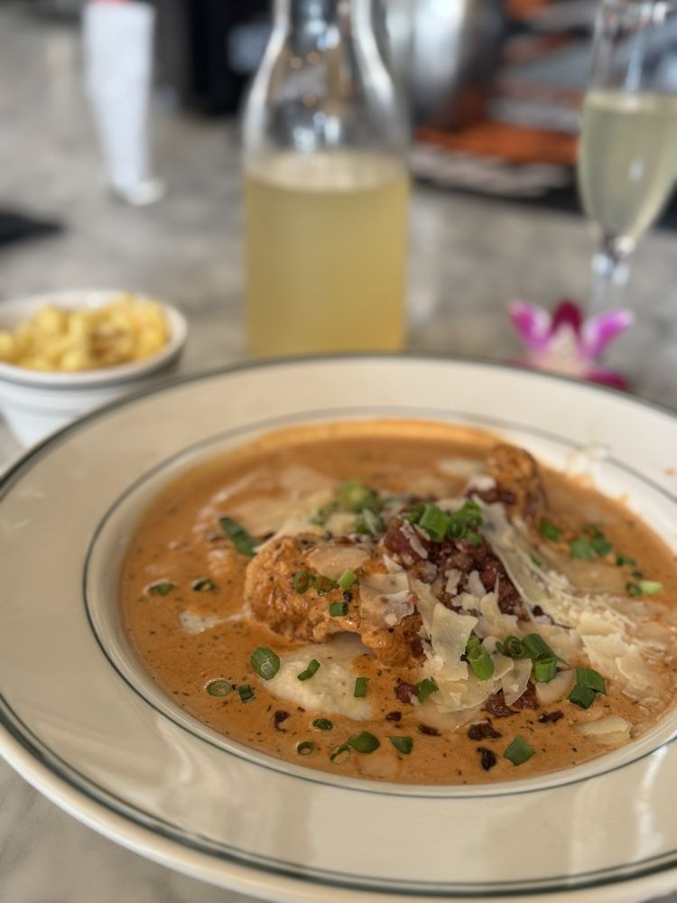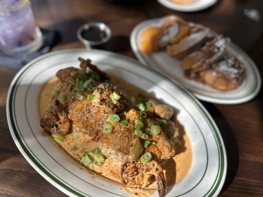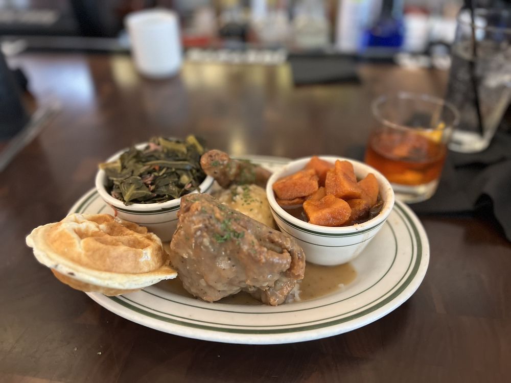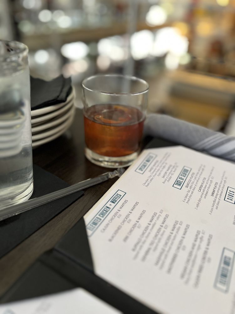 The menu leans into elevated soul food and Cajun-Creole flavors, featuring standout dishes like jerk lamb chops, fried lobster, chicken and waffles, Cajun seafood pasta, and rich sides like smoked gouda mac & cheese. Creative cocktails are a major part of the experience, including dessert-inspired drinks like peach cobbler and pecan pie cocktails that add a playful twist to the bar program.